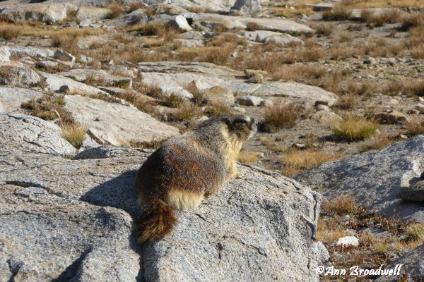 This is as close as one can get to easy day hiking in the Sierras. We will leave our perch on the edge of Evolution Basin, to drop 900 in 1.4 miles on a loamy trail to a series of meadows, first Colby, then McClure, and finally, our destination, Evolution Meadow. The meadows and trees seem greener in comparison to the rocky, barren landscape of Muir Pass.