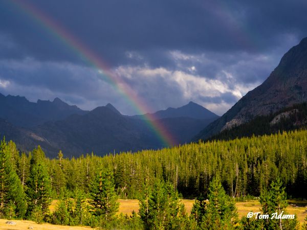 Returning to the Pacific Crest Trail, the path climbs briefly, gaining 300 in the first mile and then undulates along the side of the mountain with good views of Big Whitney Meadow to the left. The trail enters Sequoia National Park in three miles, dropping steadily through open forest the rest of the day, passing the Siberian Pass junction at mile four and the Upper Rock Creek Trail junction at mile 8.5. The trail will finally cross Rock Creek and then we will follow a use path down the north side of the creek to our camp alongside a beautiful meadow edged by the creek. The creek crossing might be tricky if there has been recent rain.